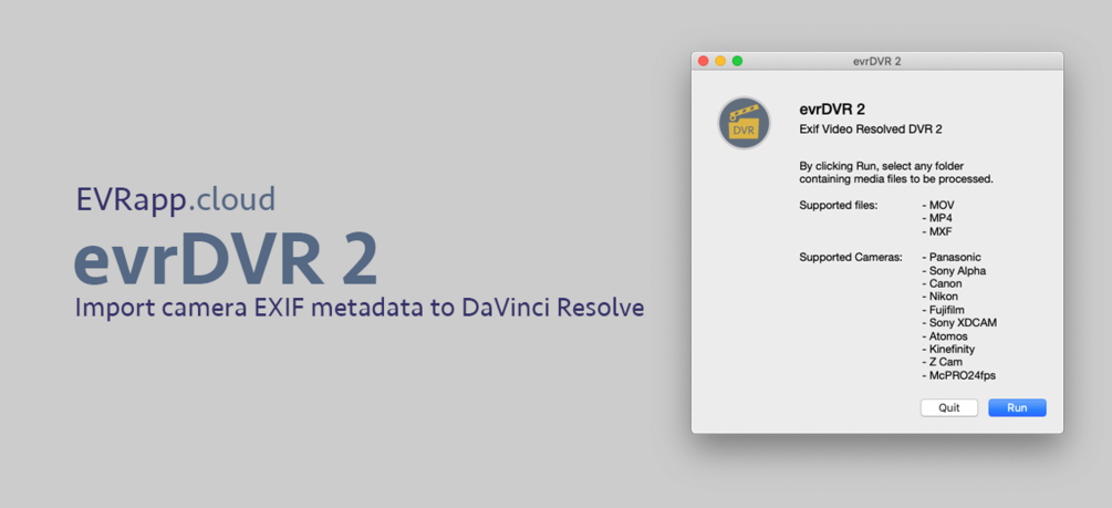 Exif Video Resolved for DaVinci Resolve make it possible to extract media file metadata, giving you a CSV file formatted with the required tags. Just select any folder from your OS application (Finder or Explorer) and run the extraction & conversion and the utility will create a CSV file with tags that can be imported in DaVinci Resolve. evrDVR 2 Professional can import macOS Finder Tag (colors included) as Keywords and Flags metadata in DaVinci Resolve.