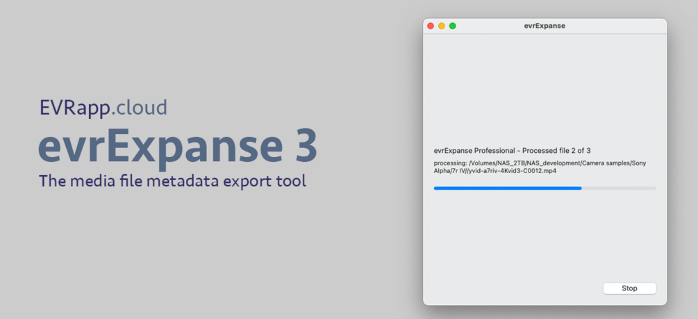 Exif Video Resolved Expanse extracts EXIF metadata and Finder Tags from media files and builds compatible export file in CSV (Comma Separated Value), ALE (Avid Log Exchange), XML or FCPXML giving you the ability to import metadata to others applications like DaVinci Resolve, Final Cut Pro, Avid Media Composer, Assimilate Scratch and Pomfort Silverstack. Exported tags are ShutterSpeed, FNumber, ISO, White Balance, Color Space, Gamma, Focus Position (Image Plane), GyroscopeData (x y z;), AccelerometerData (x y z;), GPSLatitude, GPSLongitude, GPSMeasureMode, etc.